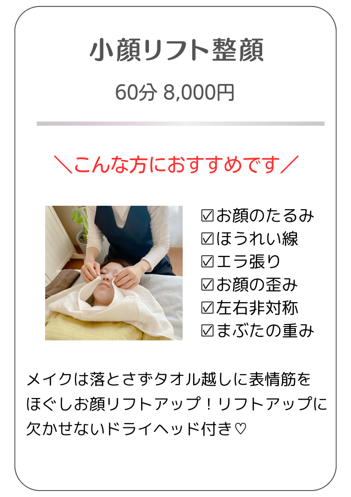 | 施術後 | ドリンクとお茶菓子を出しています。お持ち帰り頂いても大丈夫です。 |